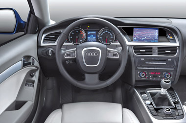 Audi A5 este un Coupe de lux cu o dimensiune intermediara intre A4 si A6. A5 nu este un automobil exclusiv sport, dar ofera stabilitate si siguranta, la deplasarile facute in mare viteza pe autostrada. Din Septembrie 2007 se comercializeaza versiunea numita 1.8 TFSI, cu un motor pe benzina "turbochanger" cu puterea de 170 CP. Beneficiul si consumul acestei motorizari este normal pentru greutatea si puterea lui, performantele sunt asemanatoare cu cele ale motorului 2.7 V6 TDI "turbodiesel" de 190 CP. A5 1.8 TFSI este modelul cel mai dorit, se vinde incepand cu 36.300 Euro, fiind alternativa economica. BMW 320i Coupe costa mai putin si este mai bine echipat. Mrcedes-Benz CLK Coupe este mult mai scump: 42.600 Euro. Prin tact si raspuns, A5 este mult mai apropiat de Audi TT decat de A6; este conceput pentru calatorii lungi oferind confort pe scunele din fata. Imaginea unui automobil de lux se imbina cu calitatea finisajelor de la interior, cu habitaclul bine izolat de compartimentul motor, cu multiple dotari, A5, se apropie prin echivalente de A6. Limitarile principale ale caroseriei constau in prezenta "unghiurilor moarte" si a spatiului insuficient pe locurile din spate; acestea permit doar unor persoane de inaltime medie sa calatoreasca confortabil. Spre deosebire de locurile din spate ale Audi TT care sunt aproape impracticabile, cele din A5 sunt mult mai folositoare.Pe locurile din fata, este suficient spatiu pentru persoane de orice statura, ambele scaune se regleaza cat mai apropiat de pamant. Spatiul pentru bagaje este grozav pentru un automobil cu aceste caracteristici. A5 masoara 4.63 m lungime, este un coupe de 4 locuri asemanator in lungime cu Mercedes-Benz CLK. In acest moment Audi A5, este disponibil cu doua variante de motorizare Diesel si trei pe benzina. Propulsorul Diesel este de sase cilindri dispusi in "V" de 2.7 litri si 190 CP si un altul de 3.0 litri de 239 CP. Cea mai slaba motorizare pe benzina este 1.8 TFSI, 4 cilindrii , "turbocharger" si injectie directa dezvoltand o putere de 170 CP. Motorizare pe benzina intermediara este de 6 cilindri de 3.2 litri dezvoltand 256CP. A treia varianta se gaseste pe modelul Audi S5, este un motor de 8 cilindri in "V" dispusi la 90 º de 4.2 litri cu injectie directa stratificata FSI, cu puterea de 354CP la 7000 rot/min si cuplu maxim de 440 Nm.Audi A5 se vinde cu o cutie de viteza automata si tractiune fata sau cutie de viteza manuala cu tractiune integrala. Cutia automata este CVT, cu un raspuns excelent.Din punct de vedere mecanic si tehnic cateva elemente sunt preluate de la prototipul "Audi Roadjet" din 2006. Persoana care sa ocupat de desing este Walter déSilva, acesta a declarat: "cel mai frumos automobil pe care l-am proiectat vreodata".